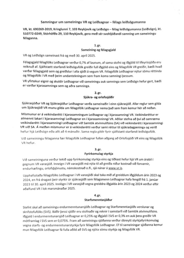 Leiðsögn election committee hereby announces a general secret electronic vote on the merger of leiðsögn with VR. link to agreement and accompanying documents https://minar.touristguide.is/kynning-a-samning-vr-og-leidhsagnar