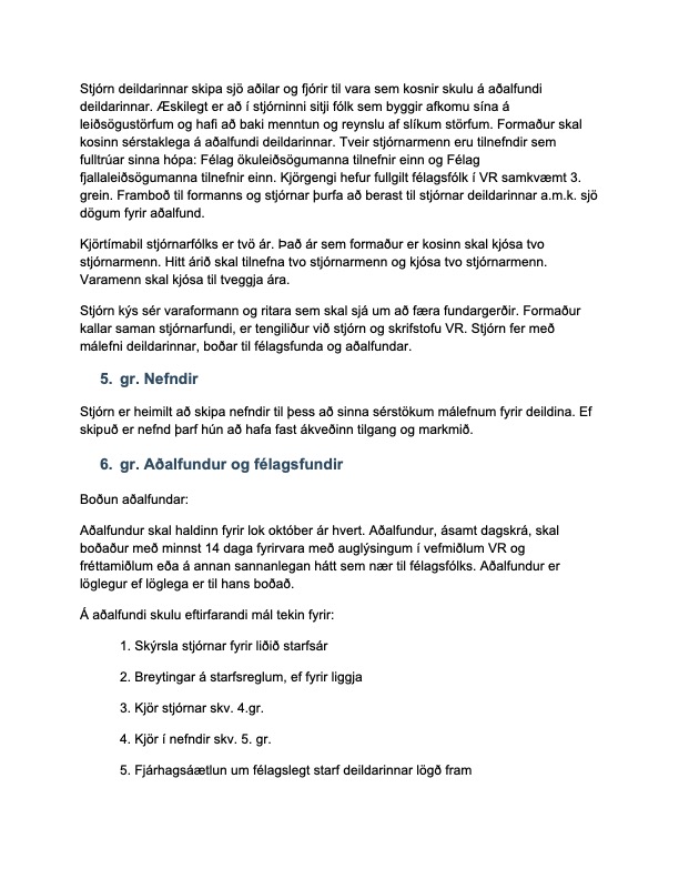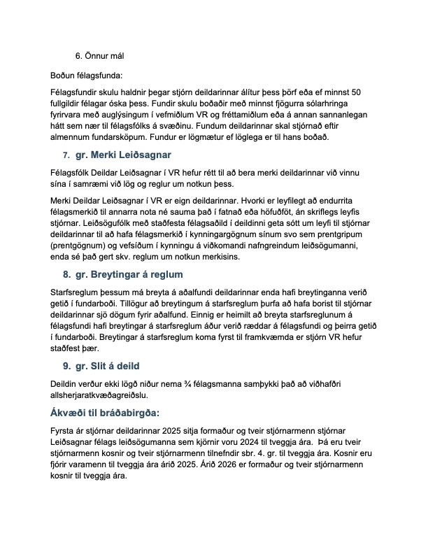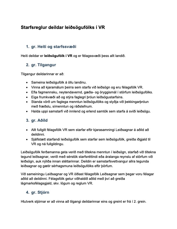 Leiðsagnar, ásamt reglum um nýja deild leiðsögufölks í VR.